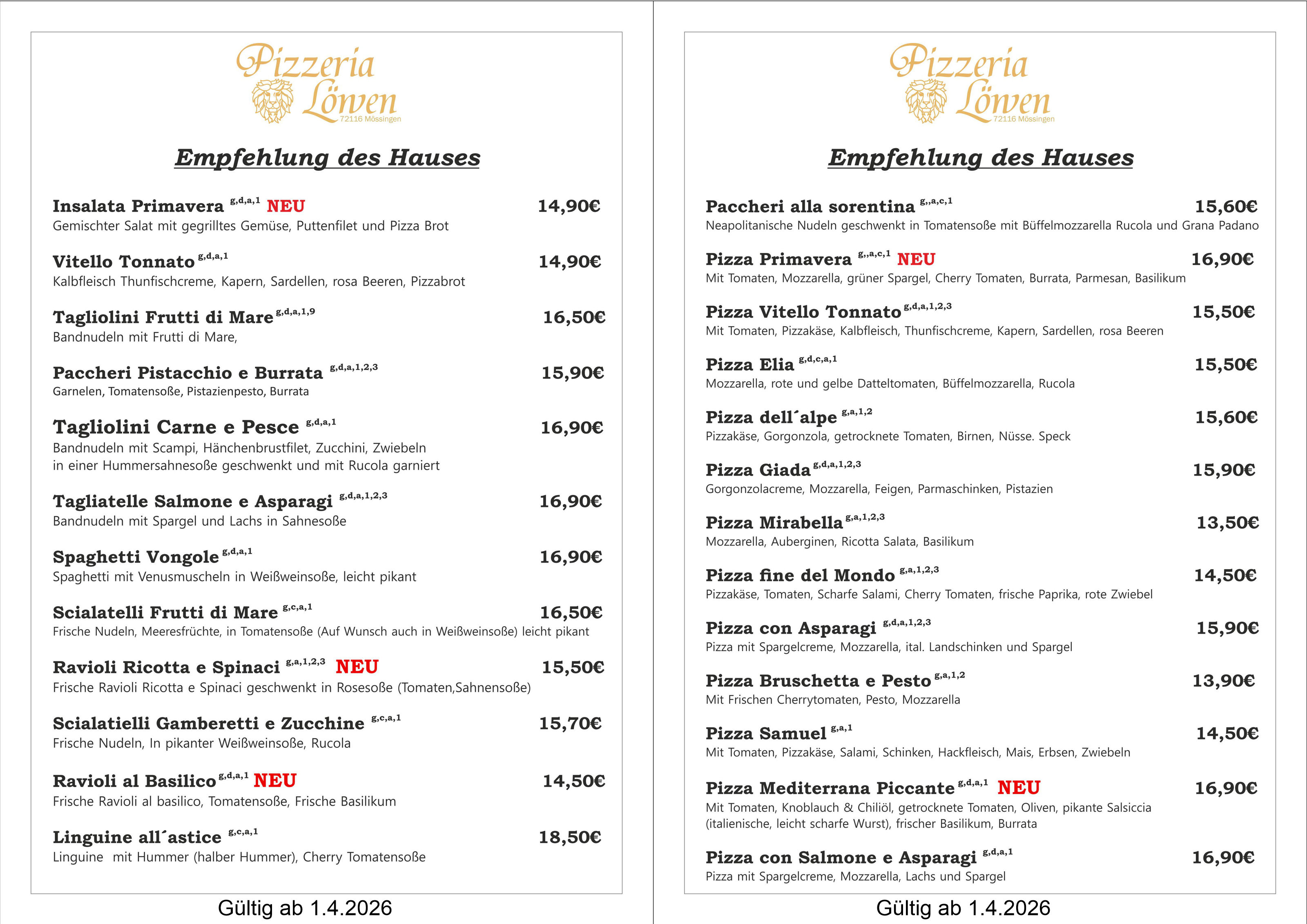 Empfehlung des Hauses Aktuelles vom Chef empfohlen Telefon: 07473 – 6437 Empfehlungskarte als PDF download bitte hier klicken.